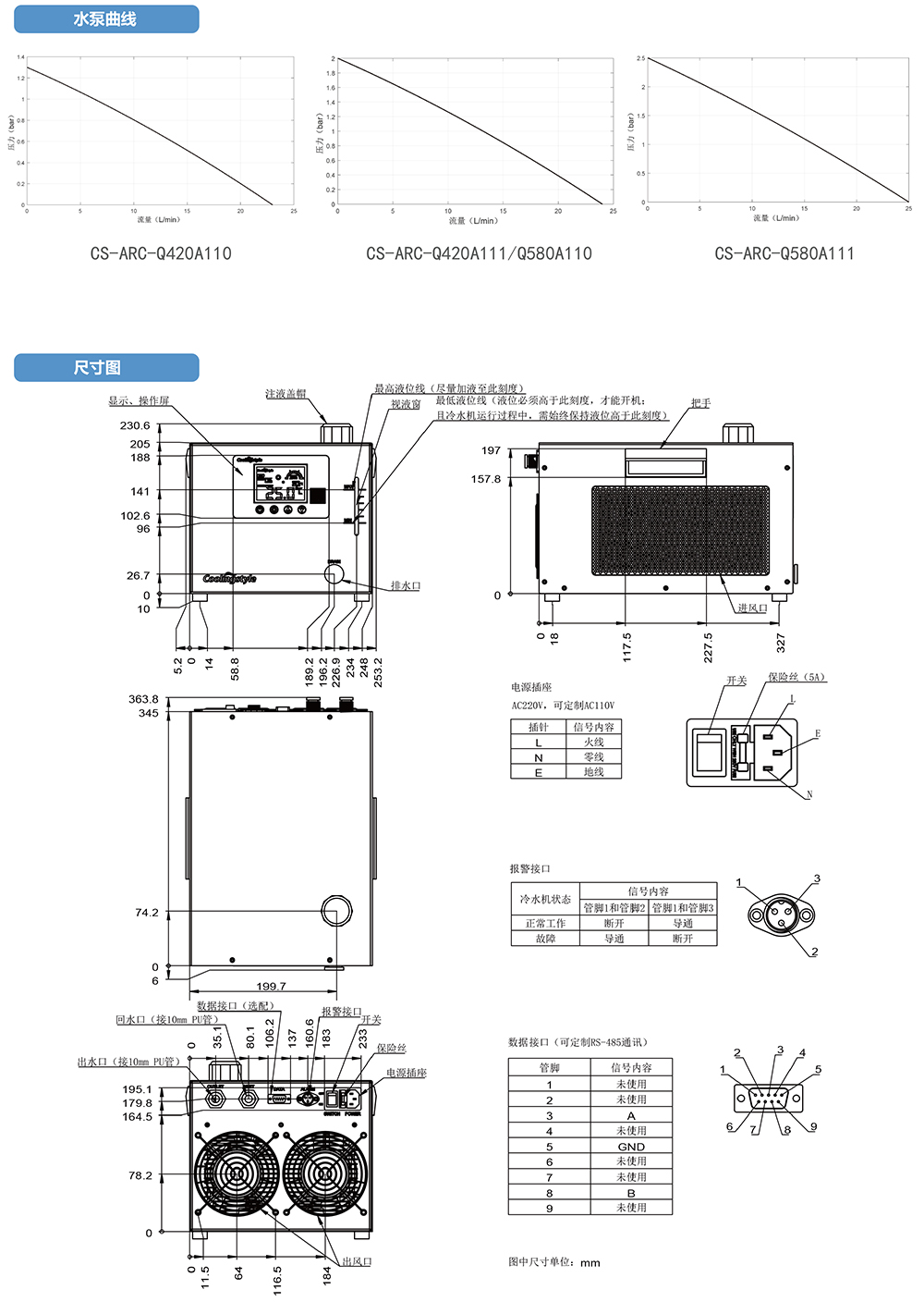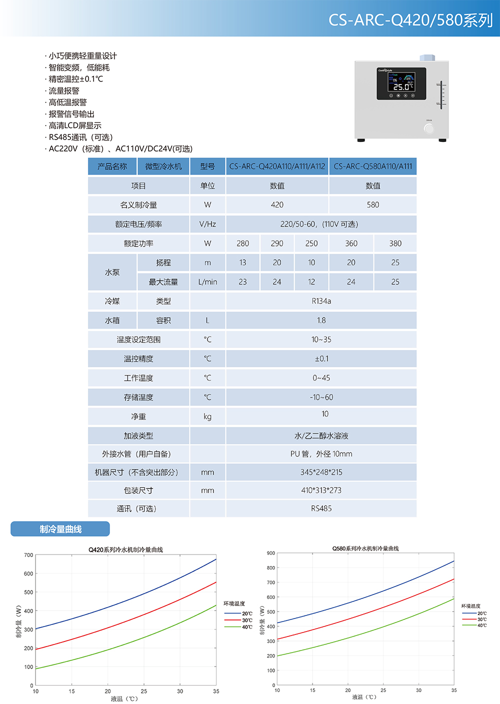 產品規格:實驗室冷水機 Q420/Q580 系列