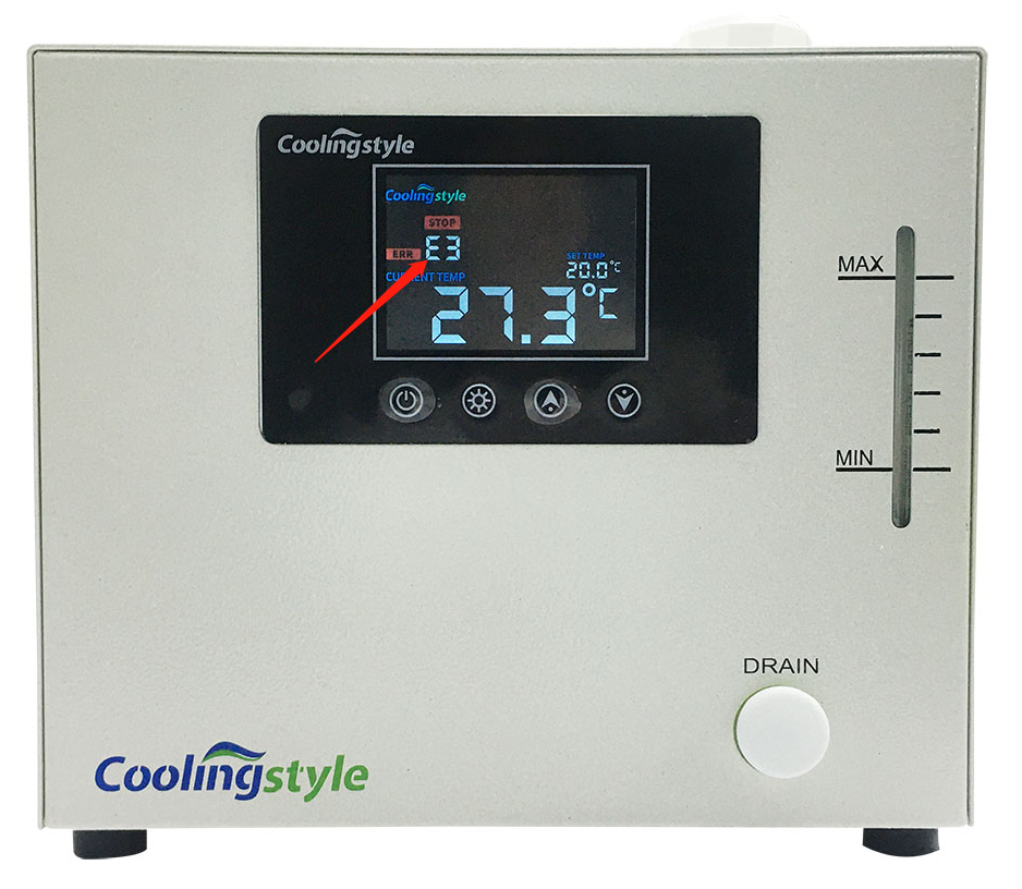 9、 冷凍循環系統異常,檢查冷凍液流量是否足夠,是否結冰未進行熱交換。