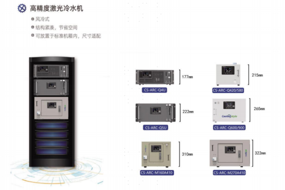 某客戶生產便攜式激光焊接設備,對冷卻系統尺寸、重量要求極高。酷凌時代為其定制開發超小型直流變頻冷水機,整機僅重5kg,厚度控制在250px以內,同時具備±0.2℃的控溫精度,實現設備一體化輕量集成。
