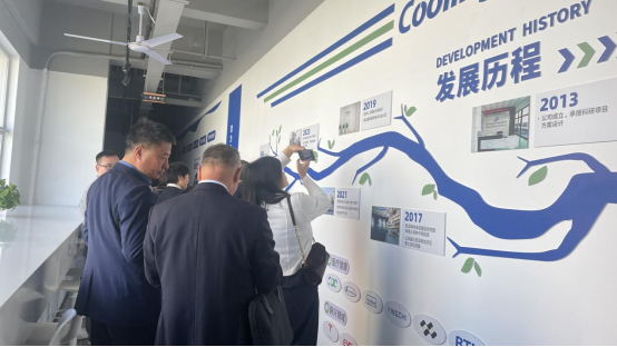 在朱元成總經理的引領下,考察團隊移步至公司文化墻參觀,了解了酷凌時代自創立以來的發展歷程、產品定位以及“創新、綠色、共贏”的發展理念。